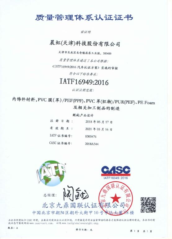 晨虹科技IATF16949:2016成功換版