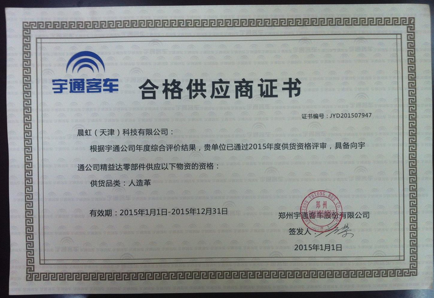 宇通客車頒發(fā)我集團合格供應(yīng)商證書